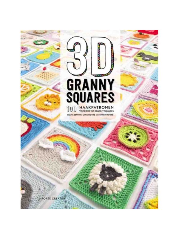 Dit boek biedt 100 verschillende 3D granny squares, bijvoorbeeld een poezenkopje, bloemetjes, koekjes en taarten, een berensnuit, inktvis of een lollige voorstelling als een ei of een lolly. De vierkantjes zijn ingedeeld in negen verschillende thema’s met elk meer dan 10 patronen. Elk vierkantje wordt uitgelegd met zowel tekst als met een haakschema. De granny’s worden afgewisseld met projecten die laten zien wat je ervan kunt maken: een speldenkussen, onderzetters en allerlei soorten tassen, speelgoed, kussens en dekens.
