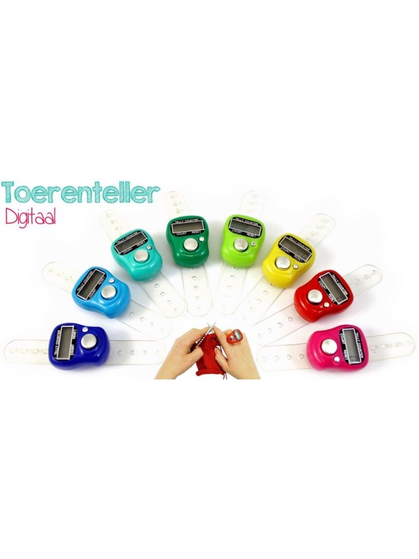 Digitale toerenteller, te dragen als ring. Past om elke vinger.Met deze toerenteller raakt u nooit de tel meer kwijt. Bij elke rij gewoon 1 maal op de grote knop drukken. De “ring” is verstelbaar, zodat deze om elke vinger past.