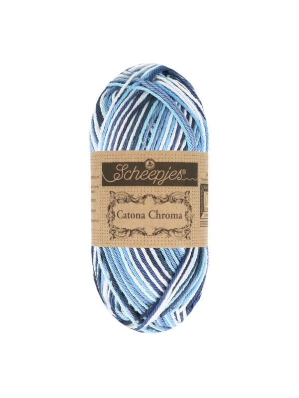 Scheepjes Catona Chroma is een prachtige meerkleurige variatie op het bijzonder populaire Scheepjes Catona. Beide garens zijn in samenstelling en kwaliteit identiek en bovendien zijn de acht nieuwe kleurvariaties van Catona Chroma gebaseerd op de bestaande kleuren van de Catona reeks. Hierdoor zijn de garens perfect te combineren en geeft u projecten een verrassend vleugje kleur. Hieronder vindt u een overzicht van elke Catona Chroma kleurstelling en welke Catona kleurnummers erin verwerkt zijn: