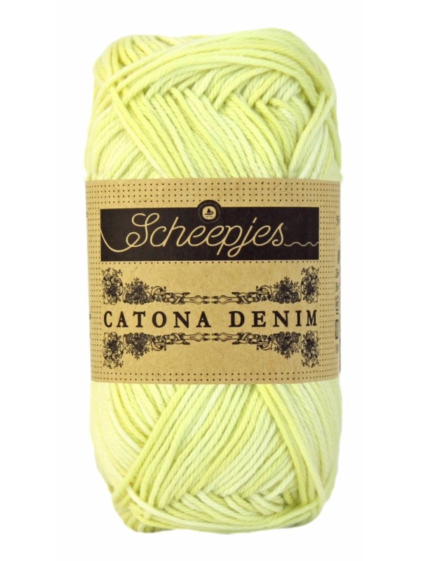 Scheepjes Catona Denim is een 100% katoenen garen met een trendy verwassen jeanseffect voor brei- en haakwerk met subtiele kleuraccenten en een unieke..