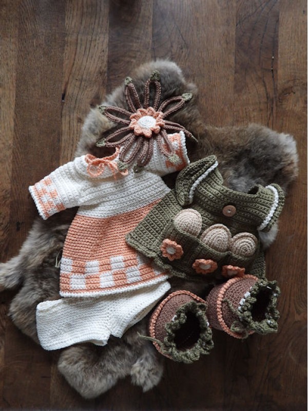 Compleet haakpakket:patroon50 gram Rio katoen; huidkleur,ecru, rood en beige25 gram katoen bruin10 gram katoen groenbontgaren ecru20 kralen 8mm rood, ..